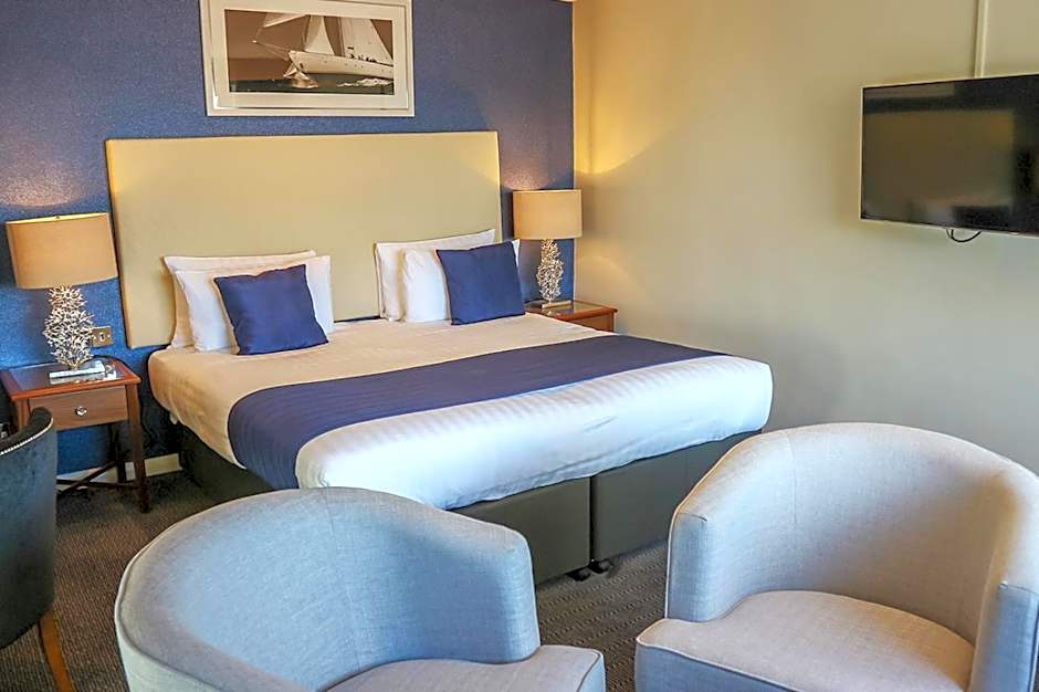 With scenic balcony views over the harbor, this bright bedroom with satellite TV, tea/coffee facilities and a private modern bathroom.